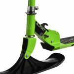 Самокат-снегокат имеет несколько уровней подъема руля. В комплекте идут лыжи для прогулки зимой и светящиеся полиуретановые колеса для летнего сезона. Самокат-снегокат имеет съемный руль, что очень удобно при транспортировке и хранении товара.